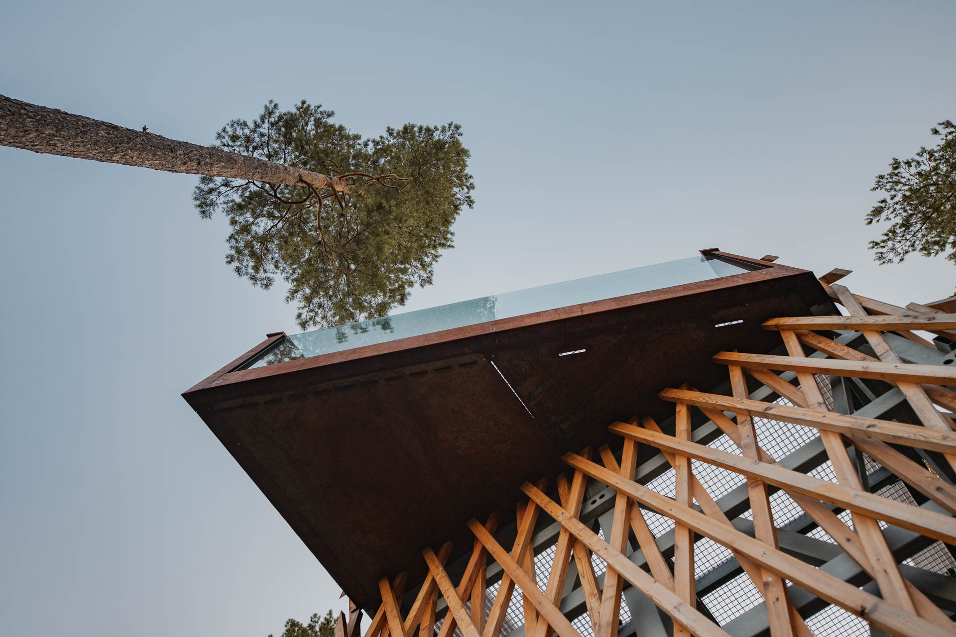 Projekt Hlídek na Stráži začal vznikat v roce 2014, kdy jsme navrhli sérii drobných zastavení na kopci nad Rokytnicí. Koncept projektu se zrodil z původního záměru města postavit na vrcholu klasickou rozhlednu. Morfologie kopce se však ukázala nevhodná na stavbu vyhlídkové věže, jelikož při standardních výškách neposkytovala dostatečný výhled. Proto jsme se rozhodli pro koncepci několika zastavení na skalách, které vrchol kopce lemují. Inspirací pro lehké stavby z oceli, které jsou opláštěny dřevem, nám byly postavy z erbu města Rokytnice nad Jizerou. A tak dnes na město shlíží jeho čtyři patroni – Liška, Medvěd, Ovce a Horník – naše Hlídka na Stráži.